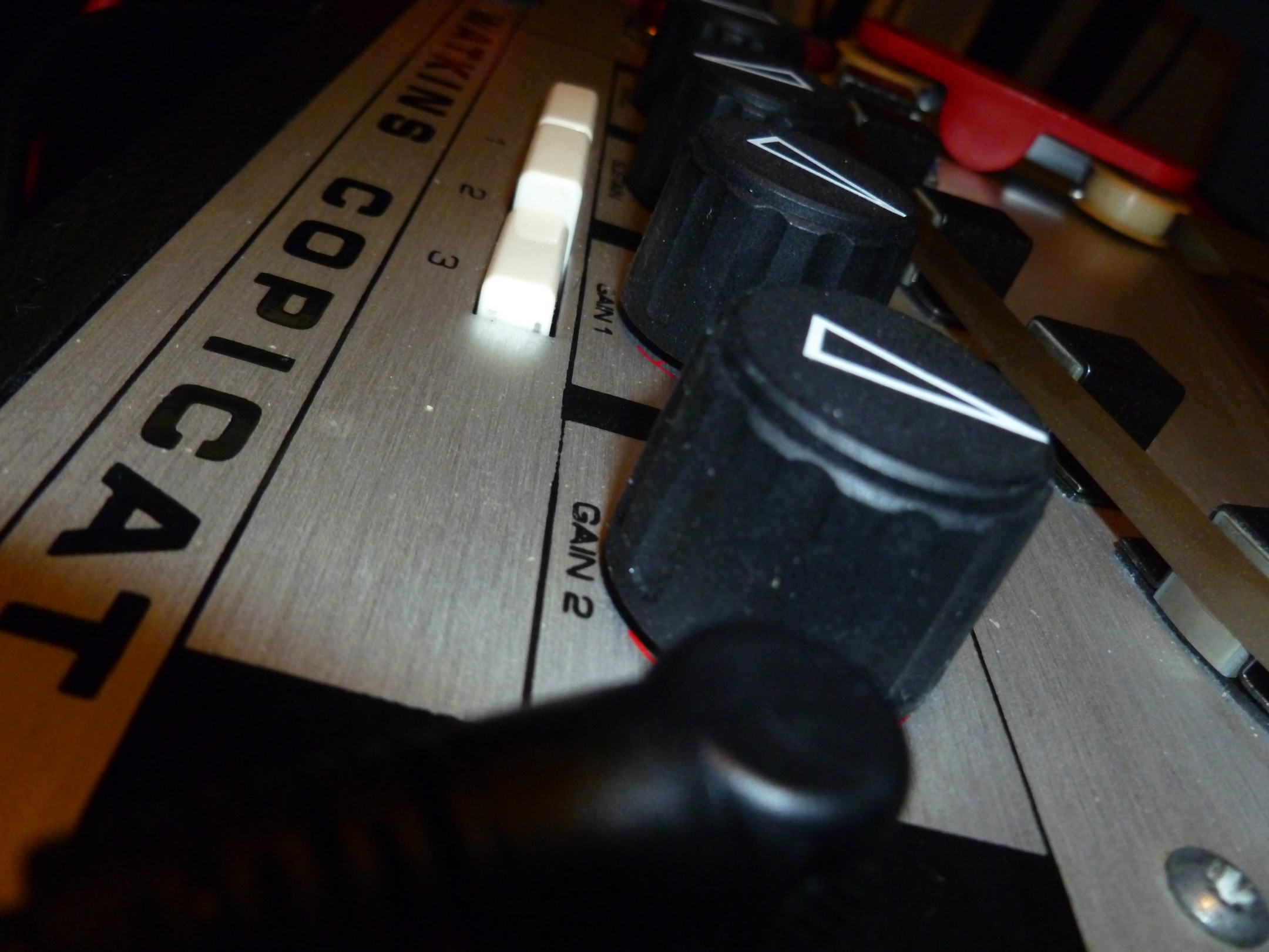 Sustained Infinity was made by hooking up a Watkins Copicat into a mixer and feeding its output back into the tape delay input but mixed in with a tone from a Minimoog model D to excite it into frequency controlled feedback by tweaking the EQ on the mixer in the regen path. The sliders were ridden to slowly entice and sustain feedback and then carefully held off everything descending into chaotic madness. Three takes were made and transposed down by several octaves in Kontakt and looped on a random round robin.
