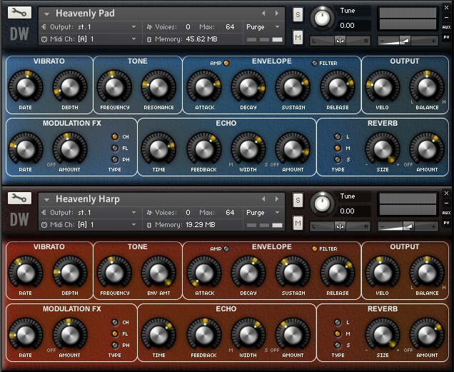 BitOneRevampedHeavenly One comes in two parts… Heavenly Harp is a large multi-sample playing on the effects of the Bit One’s shifting phase and Heavenly Pad is a cyclic phaser pad using a blend of eight instruments which have been processed with the Dual Pentode Buffer and I think the two work nicely together as a multi.