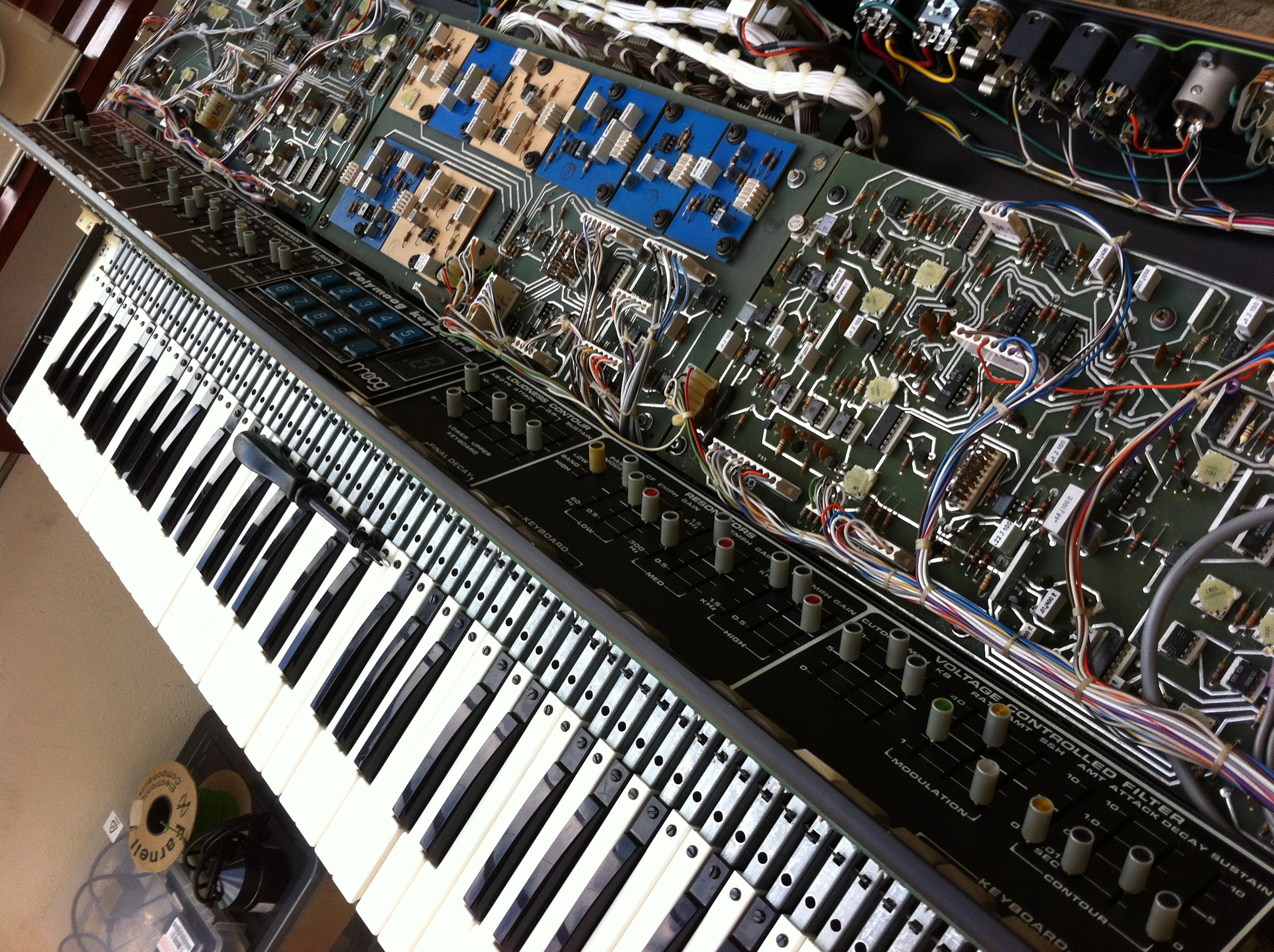 PM3211 AirVox is a celebration of the return of yet another old gem to the living world. This time it was 1976 Polymoog #3211 recently acquired by the musical genius that is Will Gregory of Goldfrapp. Rescued from the US as a very dead but promising example I set about an intense couple of weeks breathing life back into her. Some 45 CMOS chips, 37 LEDs and a retrofitted switched mode PSU later along with a deep cleanse resulted in sound – glorious sound!..