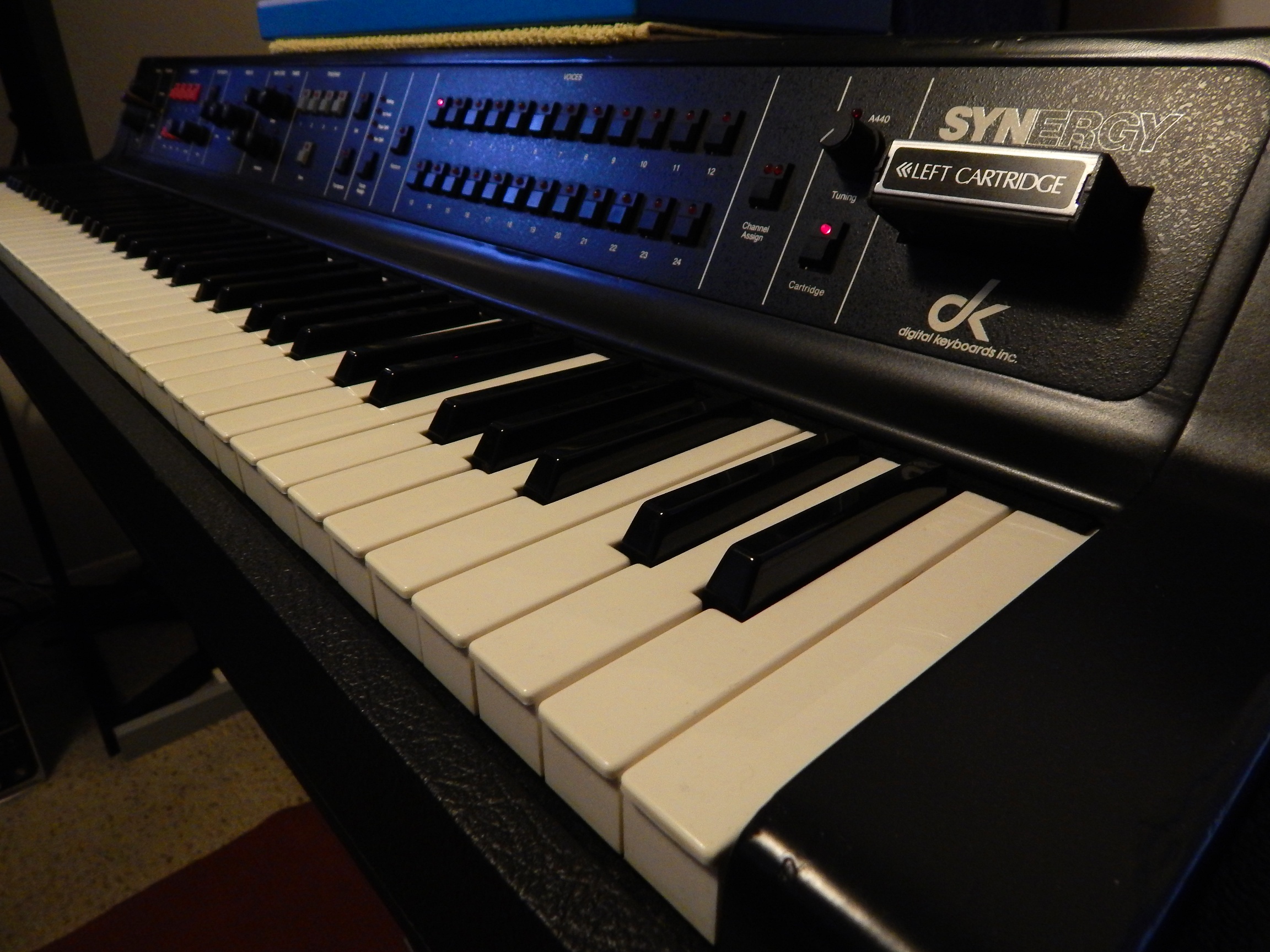 Following the GDS was the Synergy (DK-1) which relied on the identical 32 high speed oscillator subsystem but coupled to a dedicated Z80 controller thus enabling the instrument to operate stand alone relying on voice cards plugged into the front panel to permit the user to select between or layer up to 4 combinations of 32 patches. A few years later a clever upgrade was offered to basically return the programming ability of the GDS to the Synergy through the use of an external host computer manipulating a special memory area known as VRAM. This variant was known as the Synergy II+ but was not sold in great numbers thanks in part to the release of the considerably more affordable DX7.