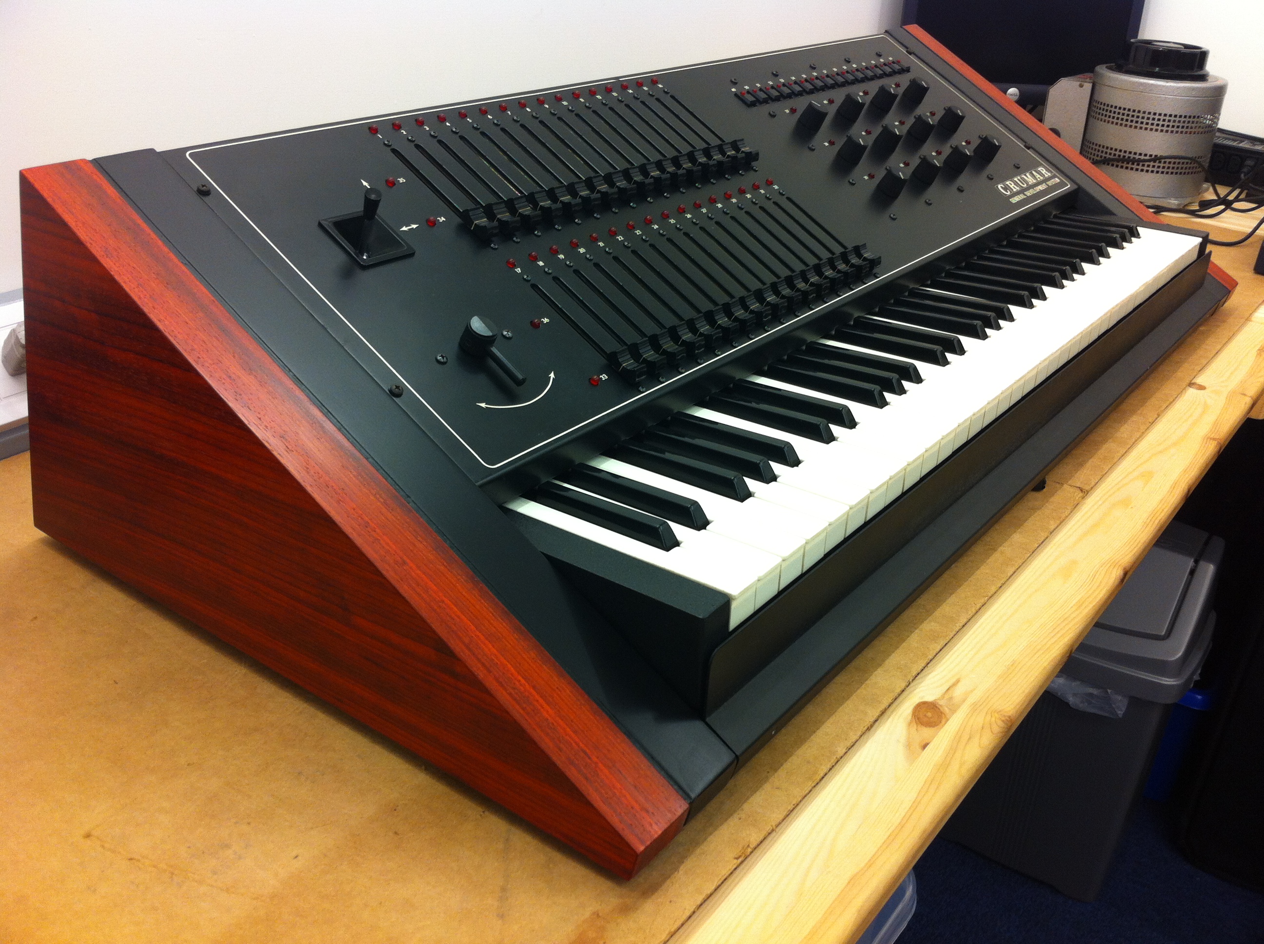 One of the two examples shown here in the recent photo was owned by a very famous pioneering German EM composer and founder of a very influential EM group. It was used extensively in number of well known recordings from the early 80s. This is just the keyboard console – the system comprises of a very large 8-bit computer with twin 8″ floppy drives running CP/M and a large serial terminal. Both systems are now back up and running for the first time in very many years and have been retrofitted with HxC disk emulators which is most definitely a first for this particular model of synthesizer. This has resulted in all of the original software and the factory sound library on 8″ floppy disks being safely immortalized in a modern digital format.